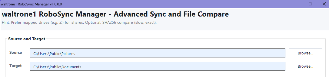 • GUI für Sync und Compare auf Basis von robocopy