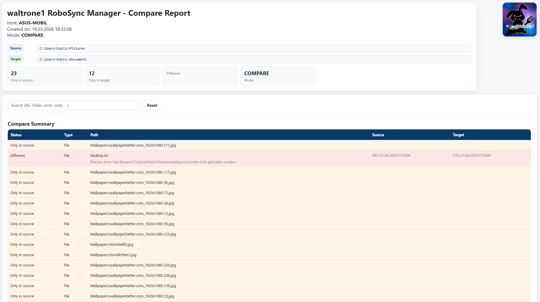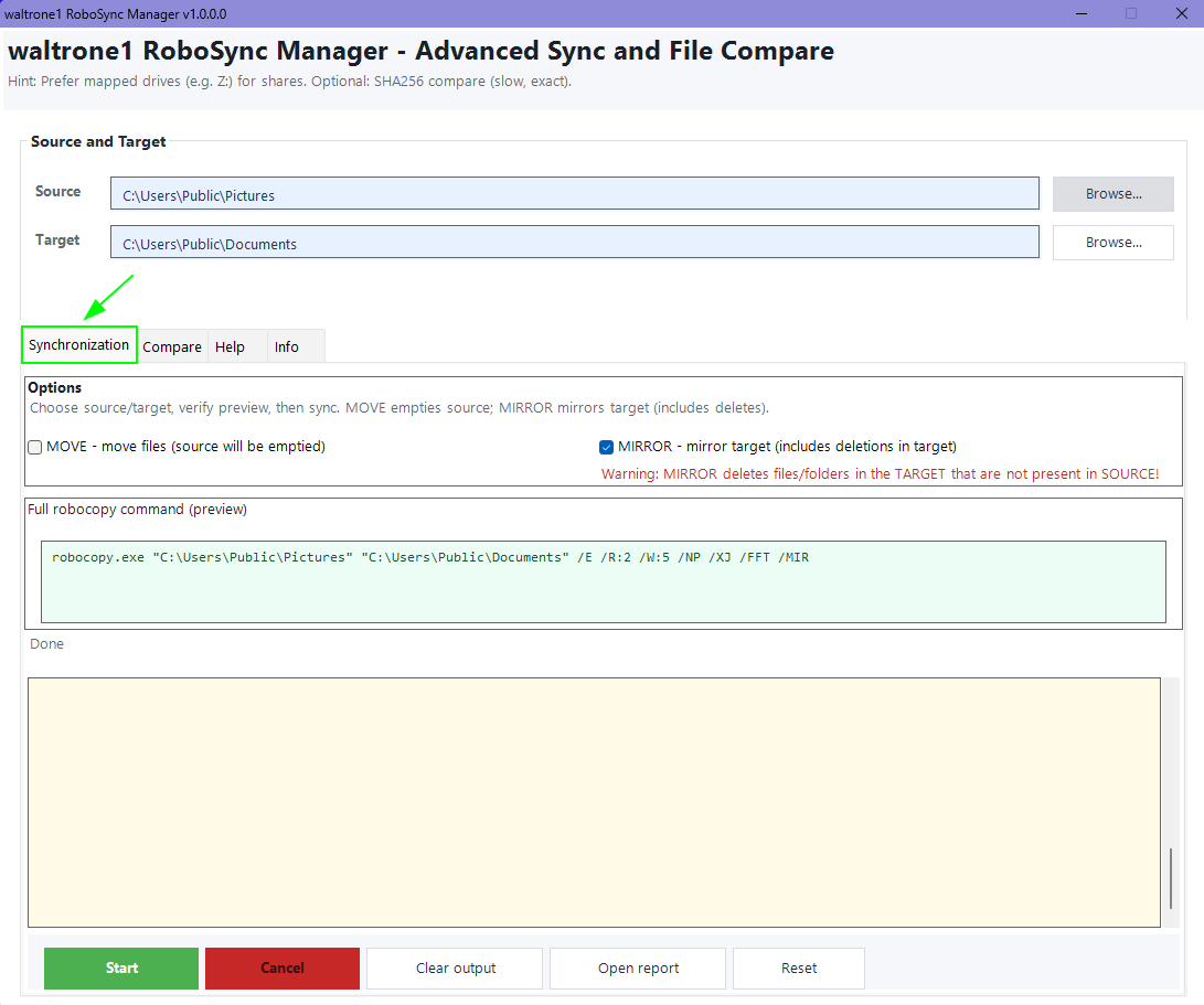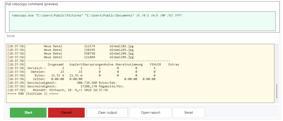 Komfortables Robocopy-Frontend für Synchronisation, Vergleich und HTML-Reports – ideal für Backup, Migration und Dateiabgleich.